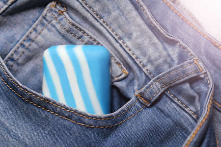 Blue beautiful soap in the pocket of men's jeans