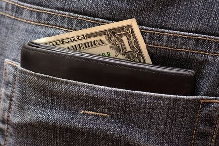 Background dollars sticking out of the back pocket of jeans shot closeup.
