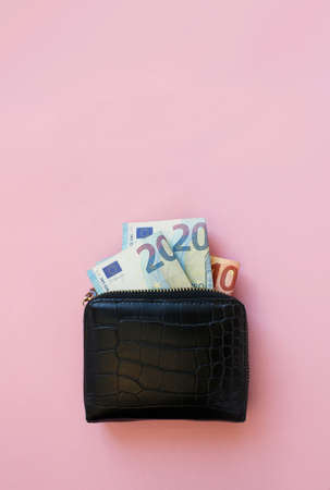 wallet and euro money. business, finance, saving, banking concept. copy space. background for economic news.