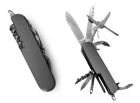 multipurpose knife opened on white background