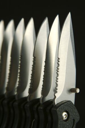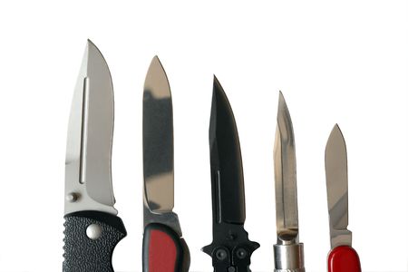 Closeup of few sharp knives isolated on white background