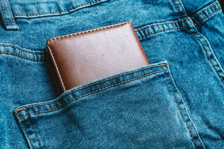 Wallet in your pocket. Wallet for storing cards and business cards in your jeans pocket. Money in your pocket. Business card and plastic cards in the pocket.