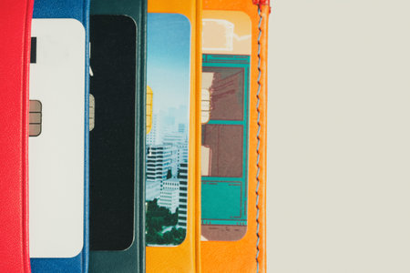 multicolored business card holders card storage accessoire finance wood background
