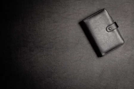 Black leather notebook on a white background