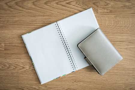 a blank notebook on wooden background