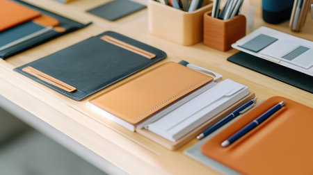 A close-up view of elegantly stacked leather folders, showcasing their quality and design, perfect for adding sophistication to any workspace or study.
