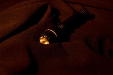 blue flashlight turn on in the dark represent direction searching in unsecured situation