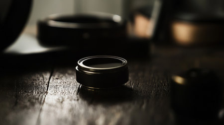 A minimalist and luxurious skincare product captured in dramatic lighting on a dark surface, exuding sophistication.