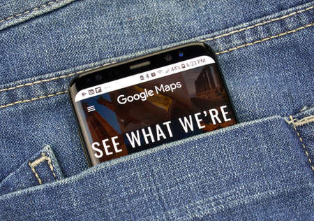 MONTREAL, CANADA - OCTOBER 4, 2018: Google Maps app on s8 screen. Google is an American technology company which provides a variety of internet services.