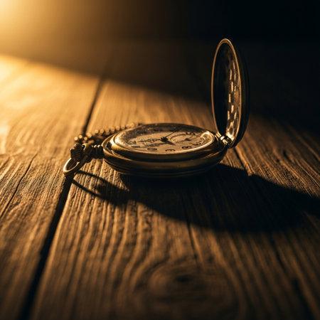 An antique pocket watch, shot in a rustic setting, conveying a sense of nostalgia, in soft, warm lighting, using a macro lens, with a hidden message engraved on the back.