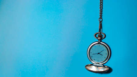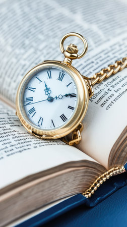 Vintage pocket watch on book with copy space.Time for study or reading concept.