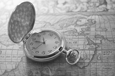 Vintage pocket watch on the railway tracks, vintage time concept.