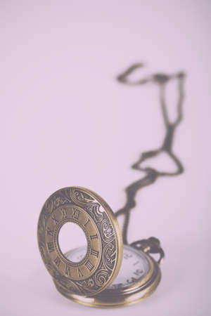 Pocket watch against a light coloured background Vintage Retro Filter.