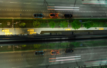 Abstract motion blur background of night street with car and street lamps. City life, lights from cityscape, style color tone. Concept of abstract stylish urban backgrounds for design. Copy space