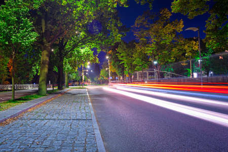 GDYNIA, POMERANIAN REGION / POLAND - 2019: Night car traffic on Swietojanska street in the city center
