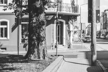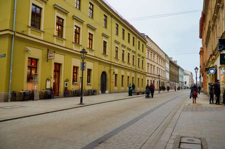 Poland. Krakow. Houses and street of the city of Krakow. Cityscape. February 21, 2018