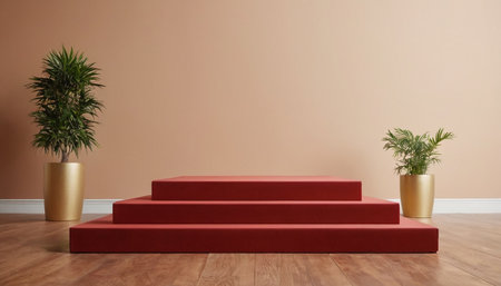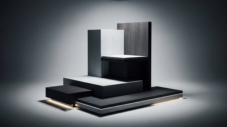 Podium background for promotional products. Studio podium for product advertising. Stage stand. Blank podium. Display platform