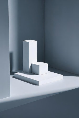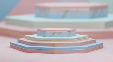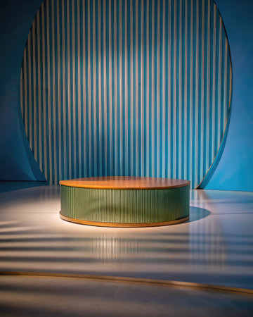 This striking image showcases a blue geometric platform arrangement, perfect for artistic displays and product showcases in modern design contexts.