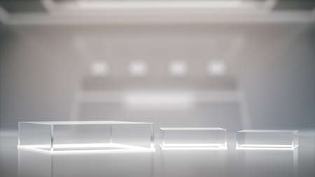 Podium in exhibition hall, 3D rendering. Abstract background.
