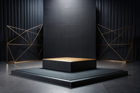 generative ai illustration of a golden pedestal in a black minimalistic room