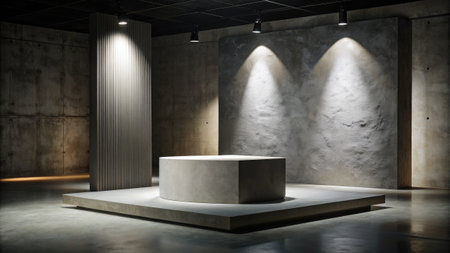 Concrete podium for product presentation on concrete wall background minimal style.,3d model and illustration.