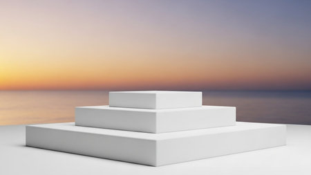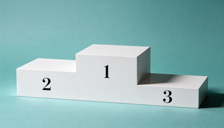 A white podium with three steps labeled with numbers 1, 2, and 3, representing first, second, and third places.