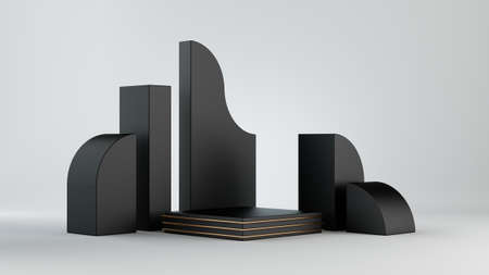 3d rendering of abstract minimal geometric forms. Glossy luxury podium for your design. Podium for show product.