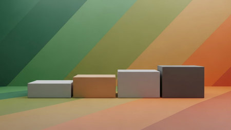Title: showing title: five gradient colored rectangular blocks arranged on diagonal color background. resolution use.