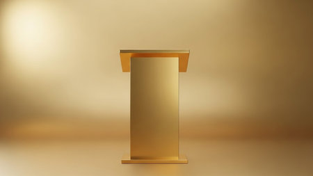 Illustration of a podium on a gold background. 3d rendering