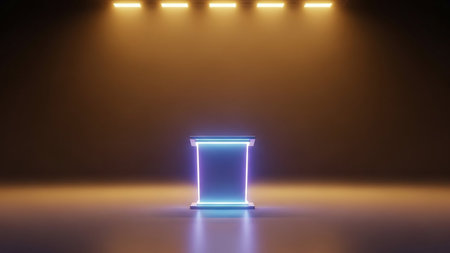 3d render of podium with blue and red lights in the night