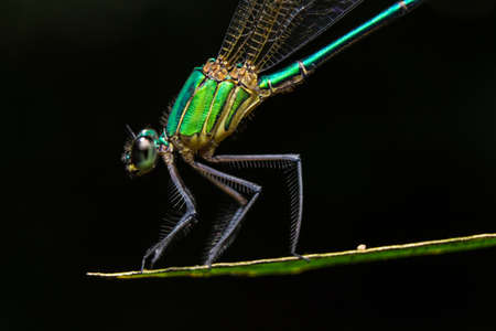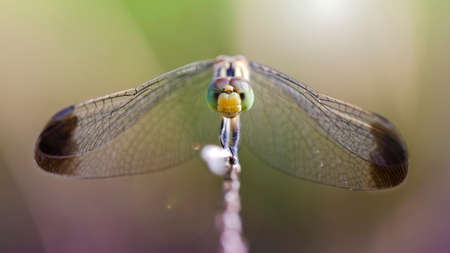 Macro shots, showing of eyes dragonfly and wings detail. Beautiful dragonfly in the nature habitat.