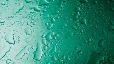 Mint colored holiday glitter background. Blurred festive green backdrop for your design. Holiday concept, new year celebration. Midnight green colored, Water drops