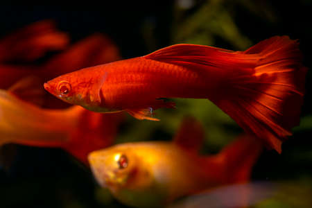 Guppys in freshwater aquarium. Poecilia reticulata.