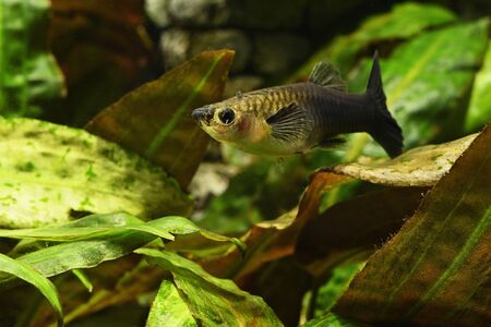 Guppy in freshwater aquarium. Poecilia reticulata.
