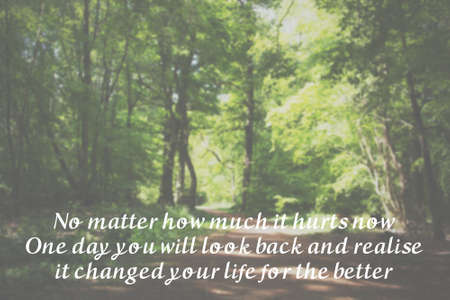 Hands Holding Torn paper with motivational quote and blurred green background. Inspirational quote
