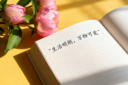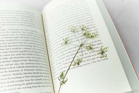 Book page with sunshine coming on it, little branch on the page, Romania language
