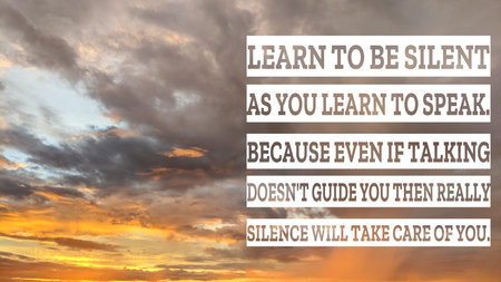 A powerful quote emphasizing the importance of silence, set against a stunning sunrise backdrop. It suggests that silence can provide guidance when words fail.