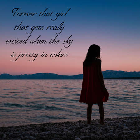 Silhouette of a young girl standing on a beach with a beautiful quote