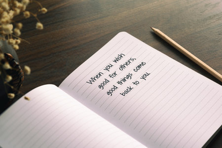 Note pad with inspirational text - When you wish good for others good things come back to you