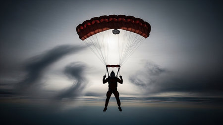 Silhouette of a parachutist with parachute in the sky