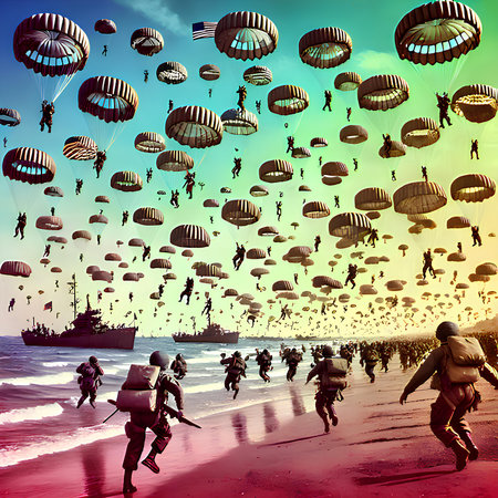paratrooper in the night sky. Generative AI