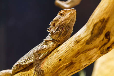 Adult bearded dragon (agama, Pogona vitticeps) on dry branch