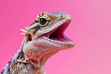 close-up lizard on a pink background.