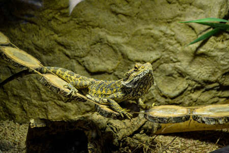 Agama australian - Pogona vitticeps - another name Agama bearded lizard in a terrarium.