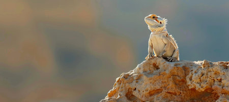 Close up view of a lizard perched on a rocky surface, reptile resting on a stone