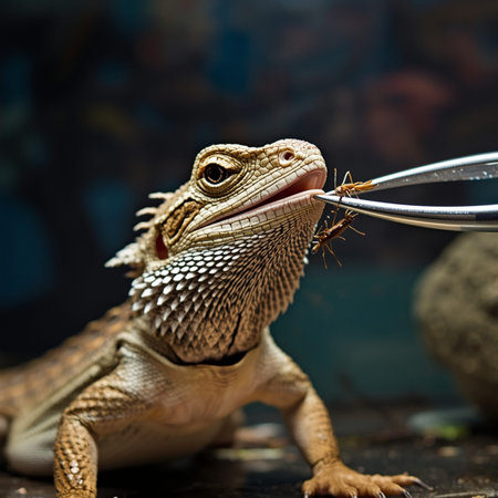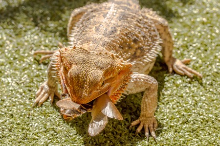 Bearded Agama lizard - Pogona vitticeps in a terrarium while feeding a cockroach