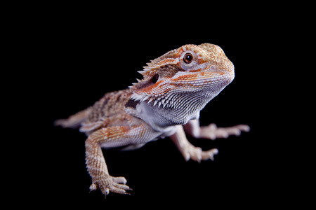 Small bearded dragon, pogona vitticeps, isolated on black background