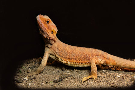 Orange bearded dragon with spikes on its back. Lizards on a black background