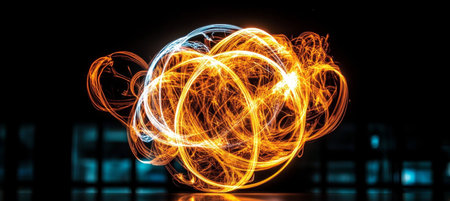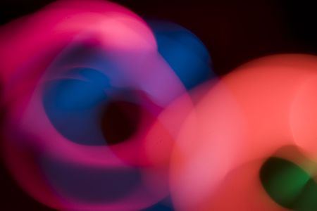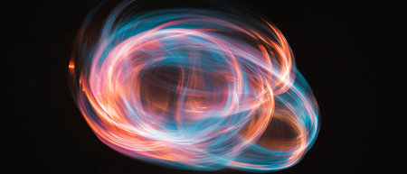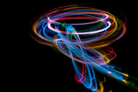 Create an abstract image using light painting techniques, swirling LED lights in front of the camera in a dark environment
