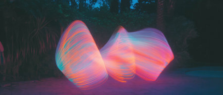 Creative long exposure light painting reveals vibrant abstract shapes at dusk